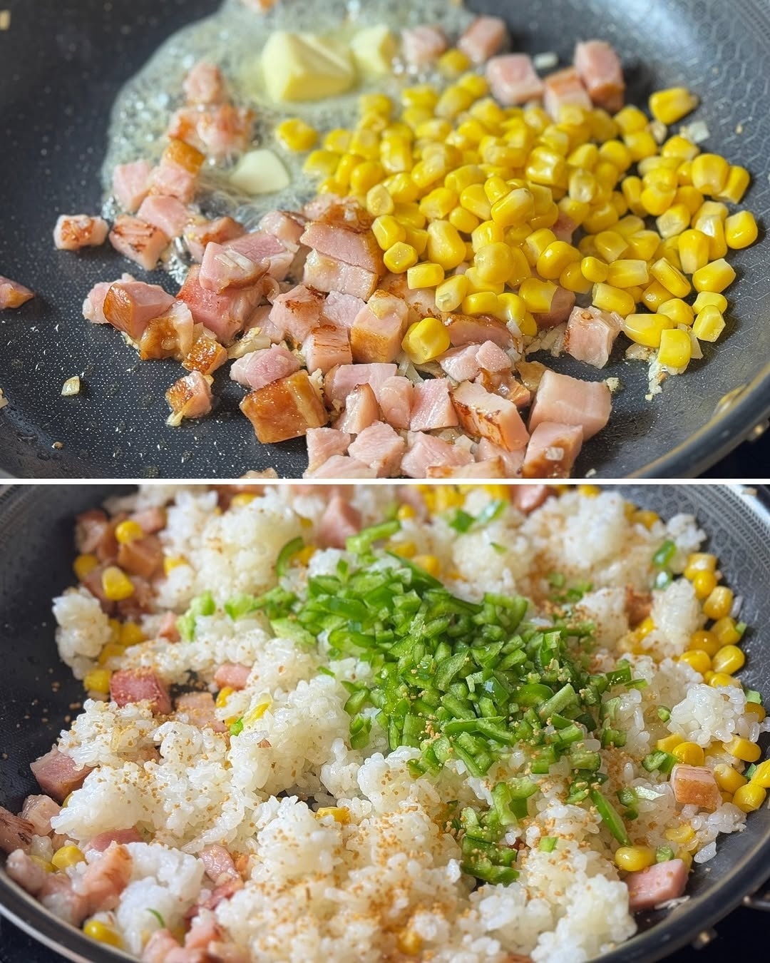 여름 채소 듬뿍! 마늘향 가득 베이컨 볶음밥 레시피 본문